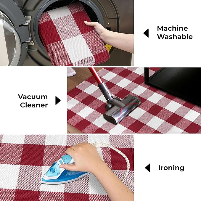 - Machine Washable Rug: The red and white rug is machine washable for easy care. Vacuum, shake, or wipe to refresh, or machine wash on a delicate cycle for deep cleaning. Air dry recommended to preserve quality; no bleach, no dryer to extend rug life