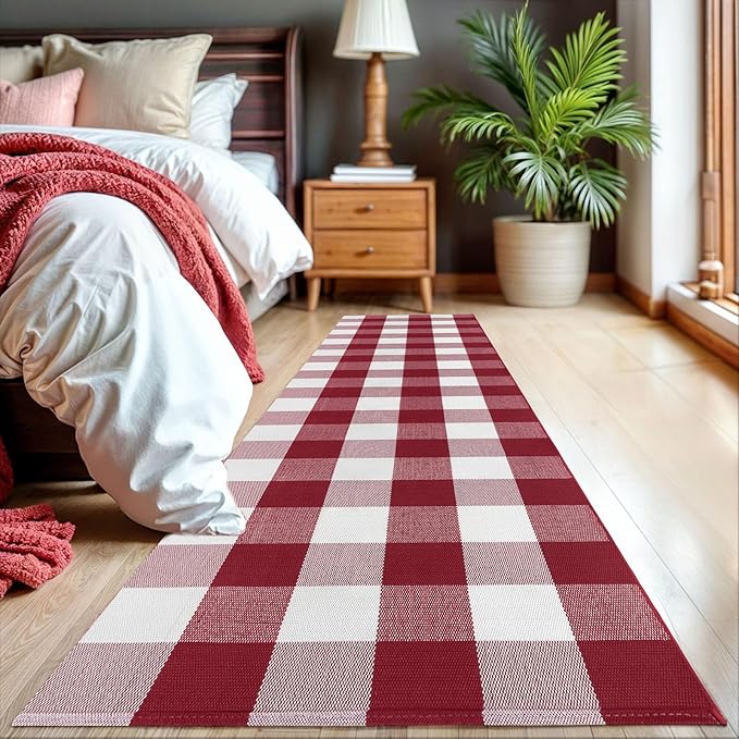 KOZYFLY Buffalo Plaid Rug 2x8 Ft Runners for Hallways Washable Checkered Rug Red and White Christmas Rugs Woven Cotton Kitchen Fall Rug Halloween Decor for Hallway Kitchen Living Room