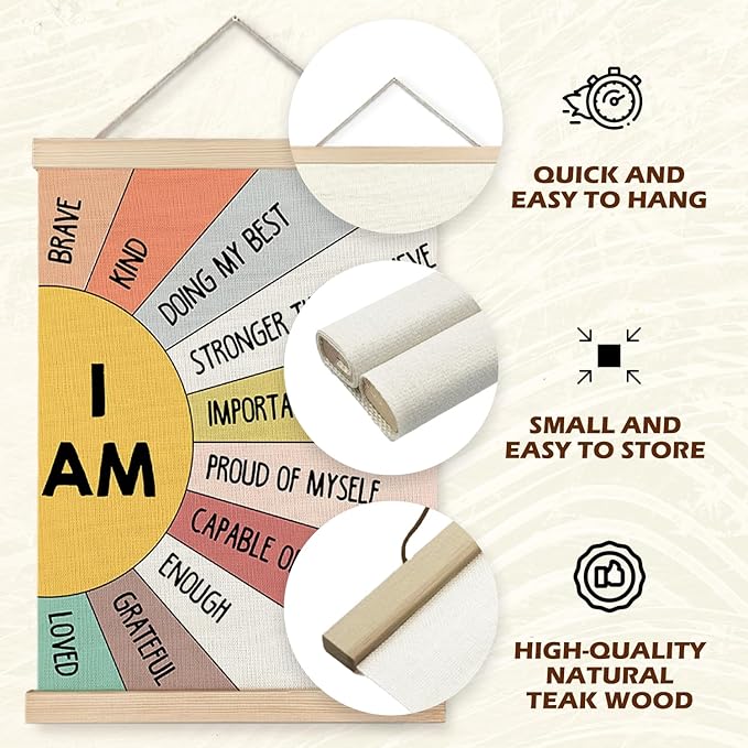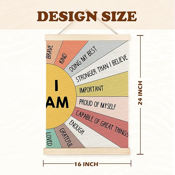 Supwhd Affirmation Wall Decor for Kids Boys Girls, I am Kind I am Brave Positive Affirmations Wall Decor, Affirmation Wall Art for Nursery Classroom Kids Bedroom 16x24