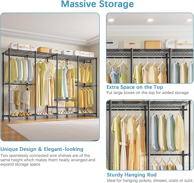 - Extra Large Freestanding Closet: VIPEK V40 Plus Garment Rack gives you endless possibilities to DIY your dream closet. It combines generous storage design with smart functionality. Perfect in your bedroom or as a commercial grade garment rack in a clothing store.