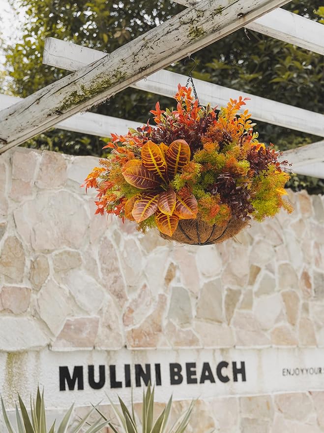 - 【UV Resistant】:Plastic plants is uv resistant and never fade, can be put outside,front porch, back deck, garden, veranda, balcony ,reservation where the hot weather kills much fresh flowers.