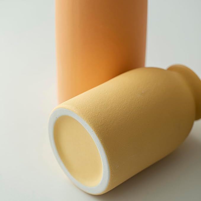 10.4 inches Tall Decorative Ceramic Vase Set, 3 Pieces, 10 inches Nordic Modern Style, White, Farmhouse Home Boho Shelf Decor(Orange)