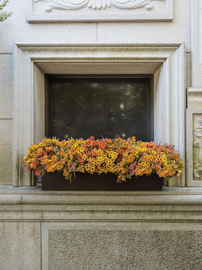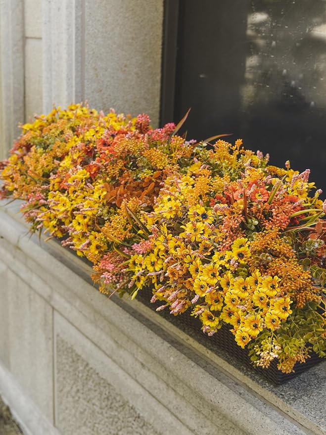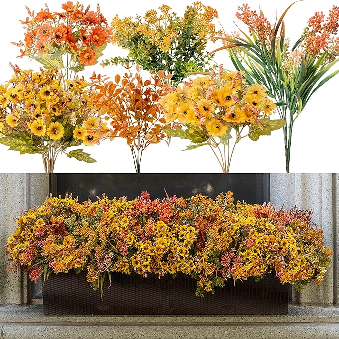 10pcs Fall Artificial Outdoor Branch with Sunflower Daisy for Indoor Outside Hanging Plants Garden Porch Window Box Home Wedding Farmhouse Décor