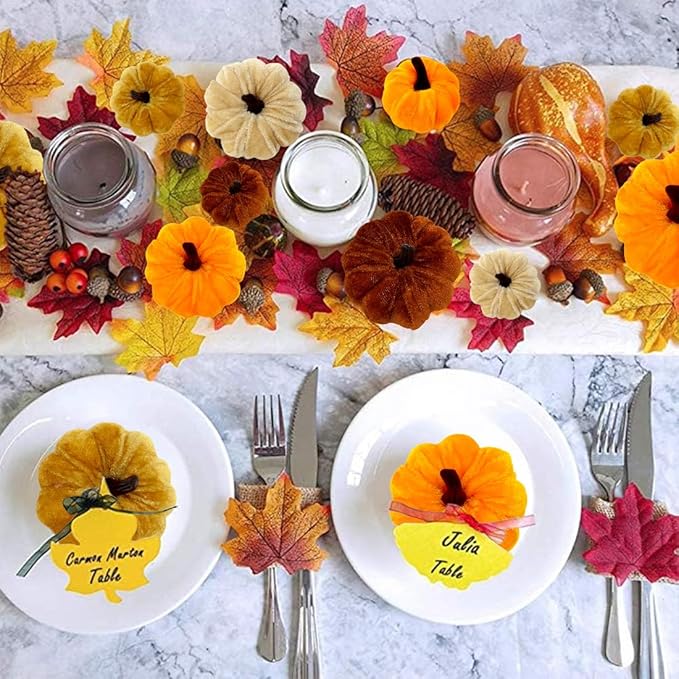 - Super Value Velvet Pumpkins Set: Package includes 12 pcs Fall Velvet Pumpkins in orange, brown, burnt orange and champagne, each color has 3 pcs pumpkins in 2 sizes. This set creates an instant arrangement for your fall, Thanksgiving and Harvest decor, or round out your mix with other fall items.
