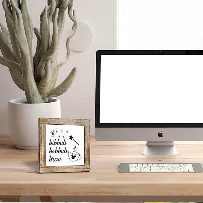 Farmhouse Bibbidi Bobbidi Brew Wooden Box Sign - Cute Coffee Decor for Kitchen Bar Table or Wall
