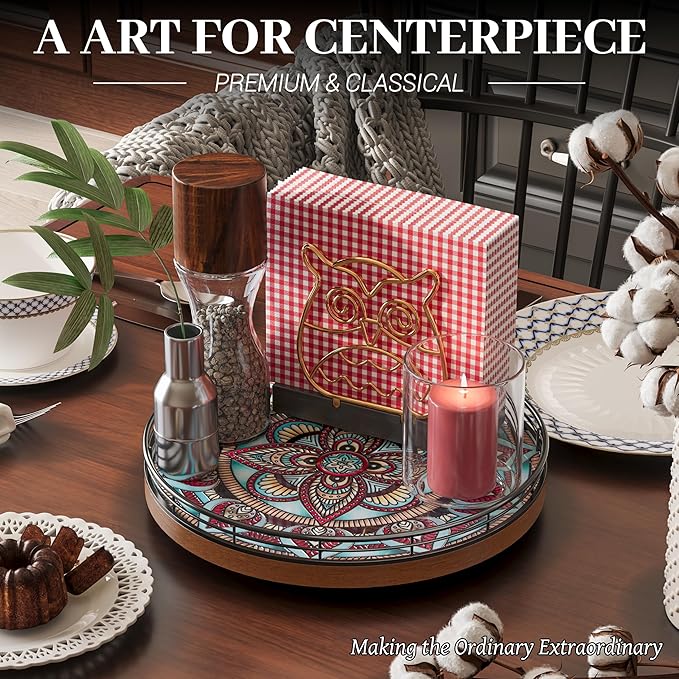 - πππππππ ππππππππ: Our farmhouse lazy susan made of natural solid wood and Ceramic 3D boho pattern, sturdy, durable, and premium quality. It will be beautiful and a completely food-safe way to decorate your food. It is known for its durability, strength, and aesthetic, as well as it can handle heavy use and resist wear and tear.