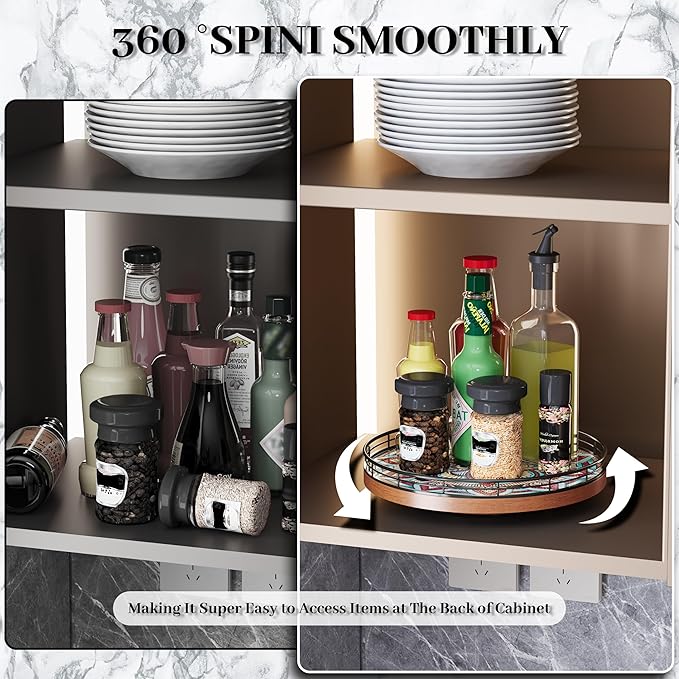 - πππΒ°ππππππππ :The base is made of solid wood, and the spinning mechanism is made of steel ball bearings, which are well-built and allow for 360Β°smooth spinning. This Lazy Susan is very attractive and very easy to use to keep your spices, condiments, and more organized and accessible.