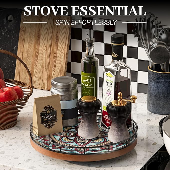 - πππππππππ πππ:This lazy susan is enough to be used nearly anywhere, perfect in the kitchen, cabinets, dining room, office, etc. on your kitchen or dining table for organizing condiments, napkins, decor, candles. Easily reach all your medicine, spices, canned goods in your pantry. Next to your stove, hold all the essentials essences, bowls, greenery, and a butter dish. Good idea for the office desk and craft room to organize. Keep your coffee stuff perfect at your coffee station.