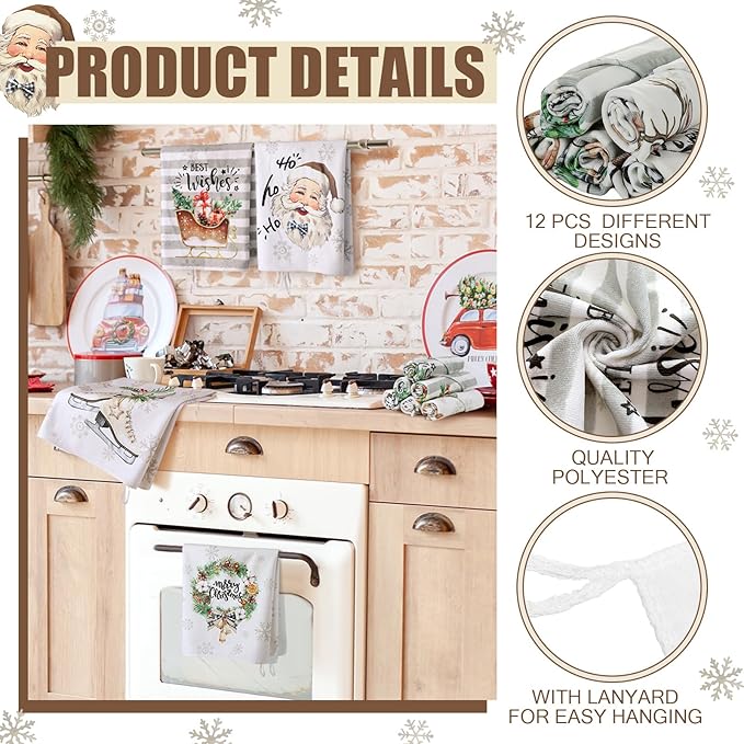 - Bulk Quantity: our package includes 12 Christmas dish towels, ensuring you will not run out of clean towels during the busy holiday season; This generous quantity makes it easy to keep a fresh, clean towel at your fingertips when you need it