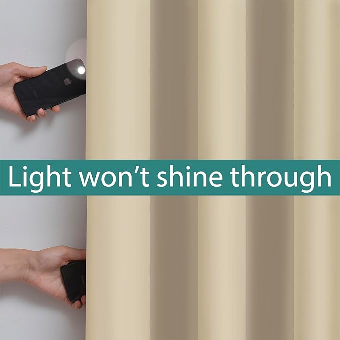 - 100% BLACKOUT:This magic blackout lined curtain panel is constructed with 2 layers fabric which can achieve 100% BLACKOUT. The heavyweight fabric is made from 100 percent high quality polyester. The design of sewing in black liner backing makes the curtain thick enough to completely block out the 100% sunlight and UV ray, protecting individual privacy.