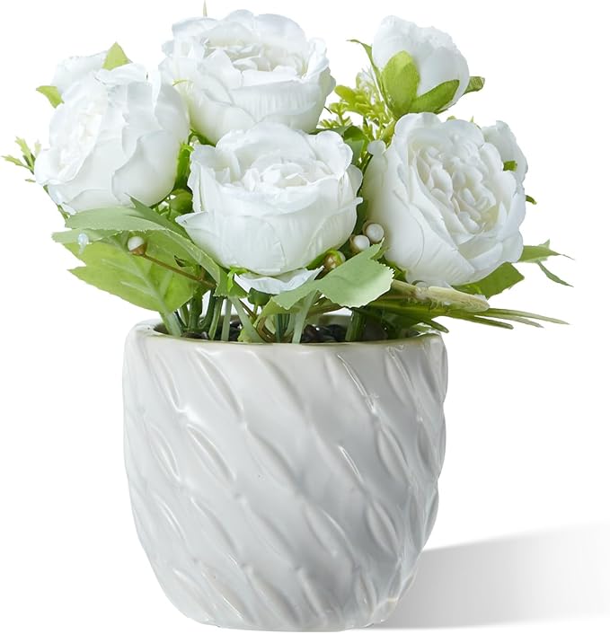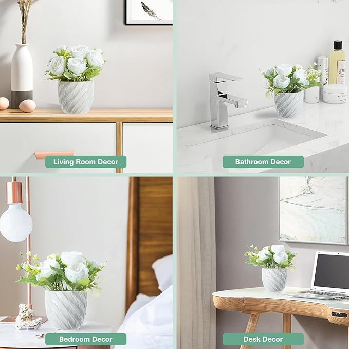 - Realistic White Roses: Our fake flowers are crafted to look like real white roses,The leaves of the fake plant have clear textures to make it look more real and vivid, providing a touch of class and timeless beauty to your room decor.