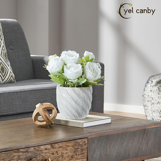 - Spiral Ceramic Pot: The pot features a unique spiral pattern ,The white ceramic pot is more textured than the paper pulp pot,that adds a modern twist to your home decor or office decor.