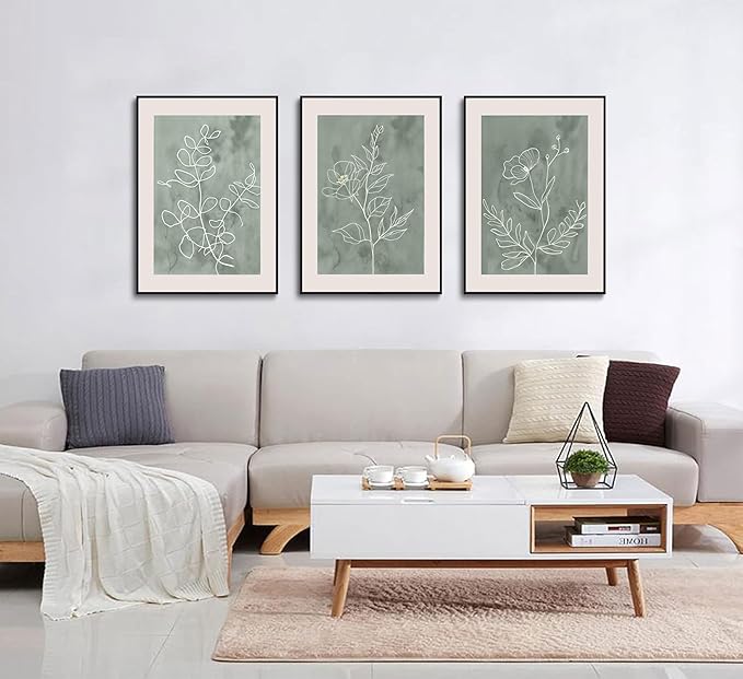 - Sage Green Line Wall Art Size :12x16in(30x40cm), set of 3,only contains canvas poster, unframed.Elevate your space with our exquisite abstract line floral wall art, adding a touch of nature-inspired charm to any living room, bedroom, bathroom and creating the perfect botanical decor.