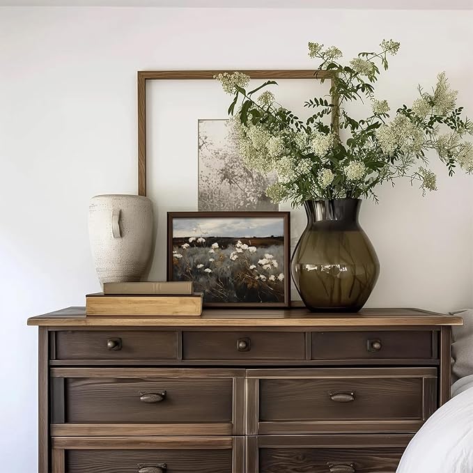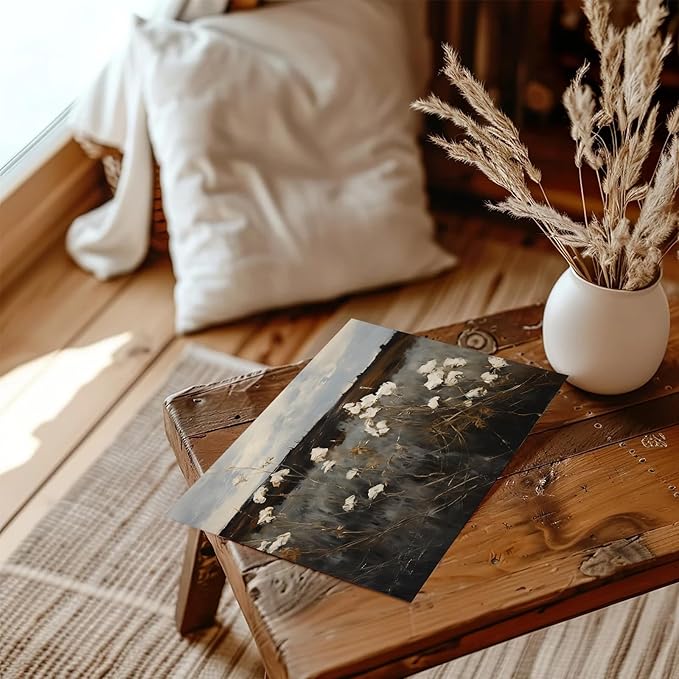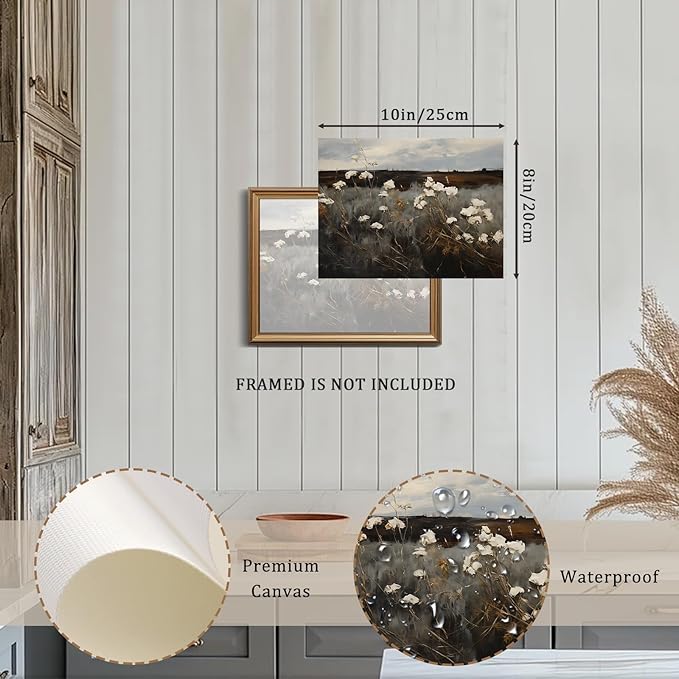 - 【Vintage Style Wall Art】: Step into a timeless realm with this moody, vintage-inspired landscape art print. A field of delicate white flowers stretches to the horizon, captured in serene neutral tones. Let your walls whisper stories of forgotten places and nostalgic dreams.