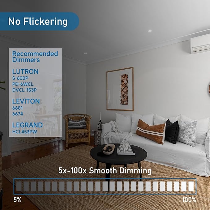 - Dimmable Functionality: The LED recessed lighting 6 inch retrofit compatible with most standard dimmers(10%-100%), allowing you to customize the brightness levels to suit your needs. boasting a high CRI >80 ensures optimal color rendering when installed correctly.