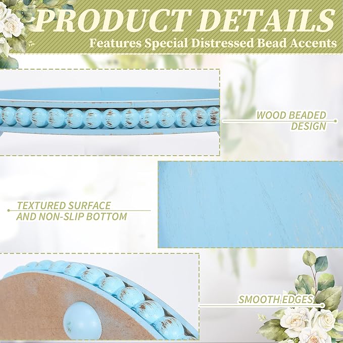 - 【Package Include】: You will receive a 12 inch round wood beaded tray , which has a farmhosue boho style to meet your decoration needs. The total height is about 1.38 inch, including 0.38 inch ball foot height and 1 inch tray height.