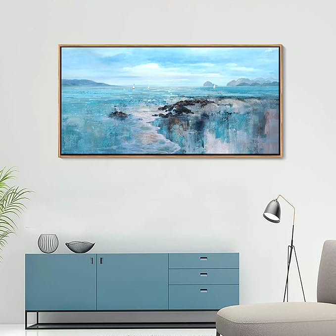 - 【framed artwork for walls size】ocean wall mural oversized art print 29x58inches,this ocean wall mural oversized art print has a pale blue and white palette that accentuates the serene atmosphere.