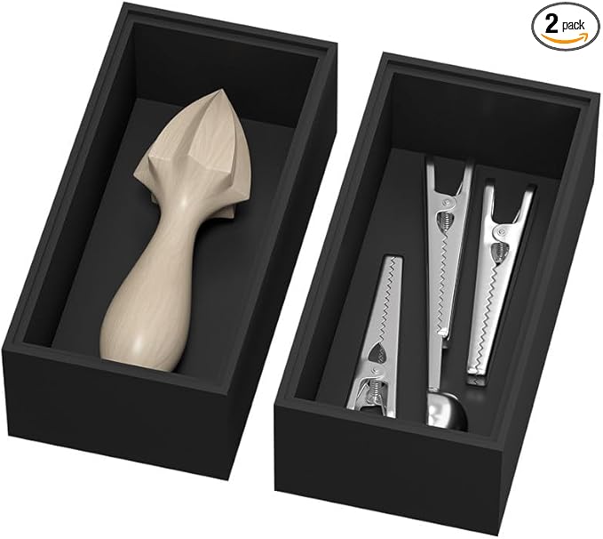 Bamboo Drawer Organizer, Small Silverware for Kitchen Drawer, Stackable Utensil Organizer, 2 Pcs Flatware Organizer, Wooden Storage Box Tray (Black, 6 X 3 X 2 Inch)