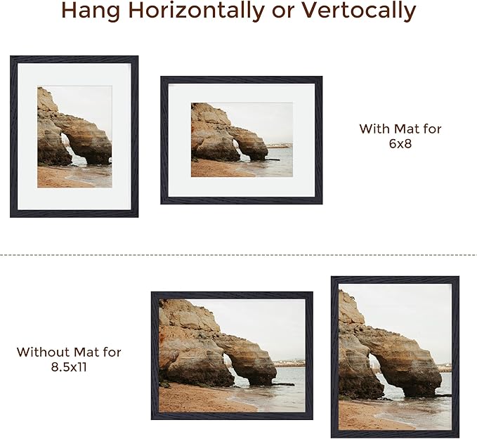 - WELL PACKAGED - Each 8.5"x11" picture frame is shrink-wrapped and secured with corner protectors, all of our 8.5 x 11 wood frames are packaged in custom-made corrugated boxes so your frames arrive in pristine condition.