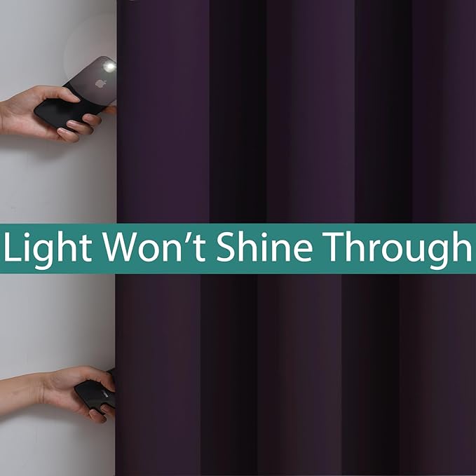 Yakamok 100% Blackout Curtains 84 Inches Long, 2 Thick Layers Heat and Full Light Blocking Soft Thermal Insulated Drapes for Bedroom(52" Wide Each Panel,Purple, 2 Panels)