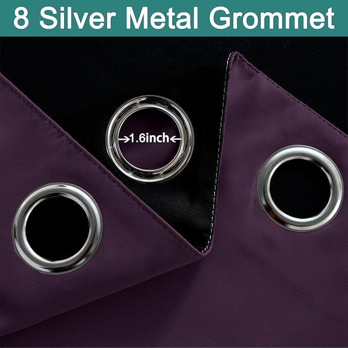 - PACKAGE MADE:2 panels per package. Each Lined Curtain measures 52" wide x 84" long. 8 Silvery Grommets per panel. This silvery grommet (1.6 inch inner diameter) fits many rods. Easy to hang and smooth to slide. The simple design gives people a sense of ease.