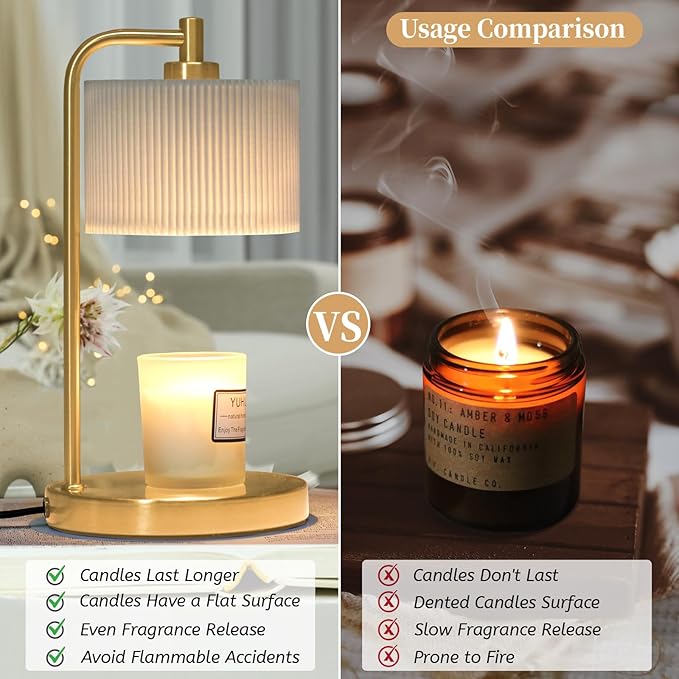 - 【Brightness Adjustable】NITOWOLF candle warmer lamp supports stepless dimming. It can warm up scented candle and put a lovely scent in the air that spreads through the whole floor, fairly quickly. Compared with traditional burning candles, the candle lamp is no flame or smoke which greatly reduces the risk of fire.