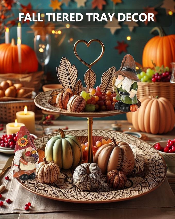 Thanksgiving Gnomes Figurines - Set of 2 Durable Resin 5'' Festive Autumn Decor - Fall Tiered Tray Decor Gnome Gifts Decoration for Home and Garden (Fall Gnomes)