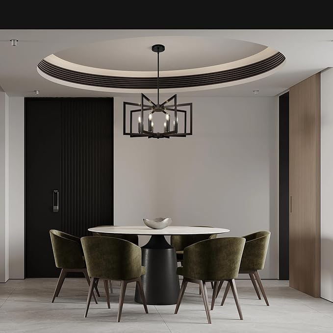 - ☼【Style & Design】This black chandelier lighting consists of a black metal frame with a minimalist silhouette, which better balances aesthetics and functionality. Crafted from high-quality metal in pursuit of symmetrical aesthetics.The unique appearance gives a stylish and modern look.