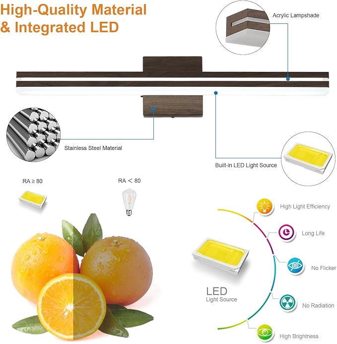 - 【Energy Saving】18W LED Vanity Light. Although only 18W, but gives off great lighting brightness more than ordinary 100W bulbs. Environmentally friendly and save more electricity.