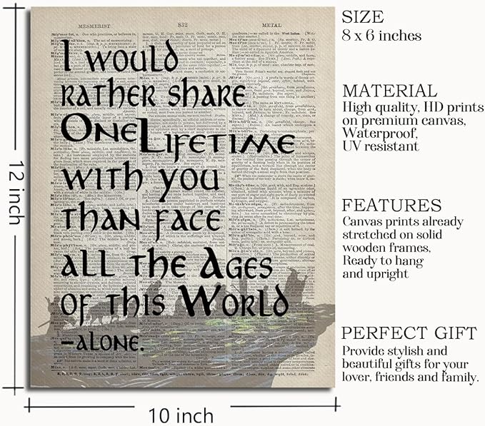 LOTR Merch: I Would Rather Share One Lifetime - Arwen, Framed Lord of the Rings Poster - Canvas Wall Art Decor, 10x12 inch