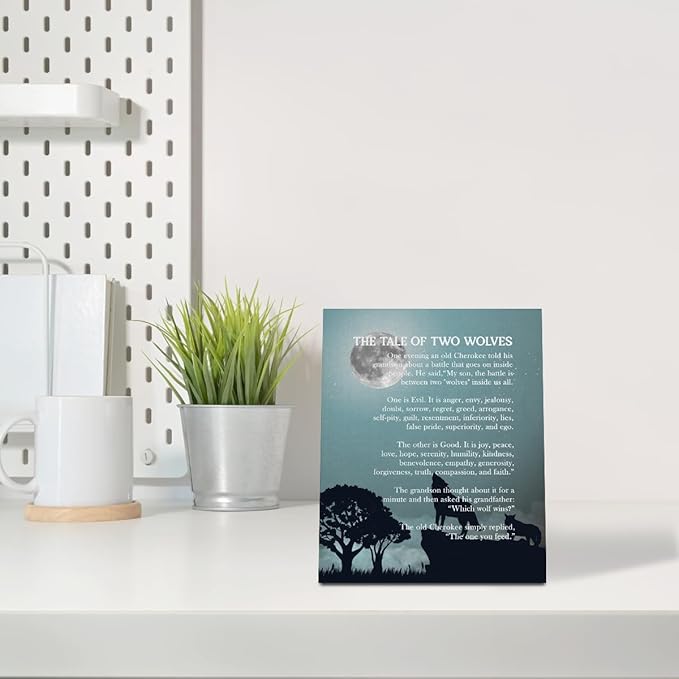 Wolf Wall Art: The Tale of Two Wolves - Native American Inspirational Quote Canvas Poster, Decor and Gifts (10x12 inch)