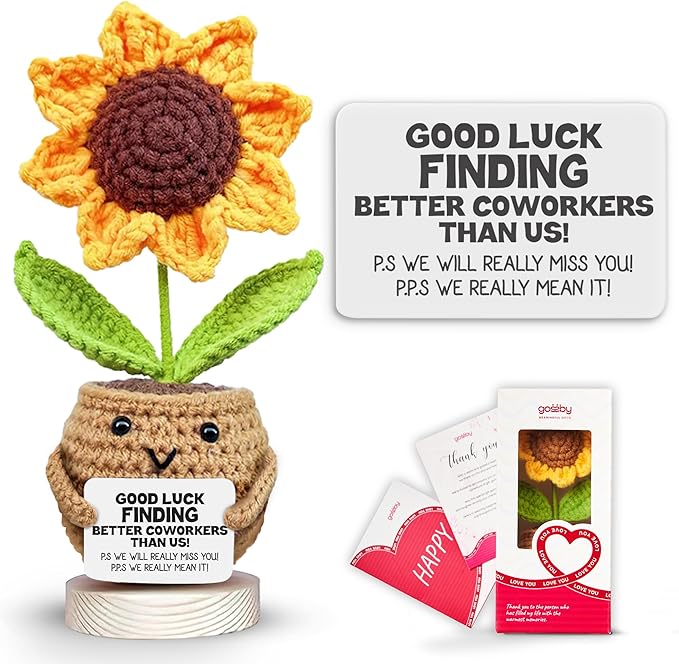 - ๐A Cute Retired Gift for Coworker: this GOOD LUCK FINDING BETTER COWORKERS positive sunflower doll crochet will embrace any teacher in a warm hug. This one will surely bring a big smile to their faces.