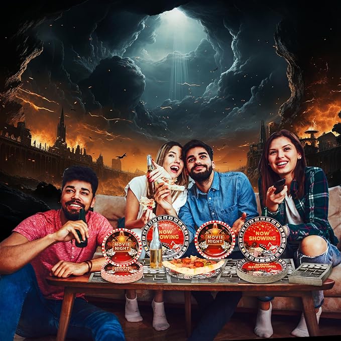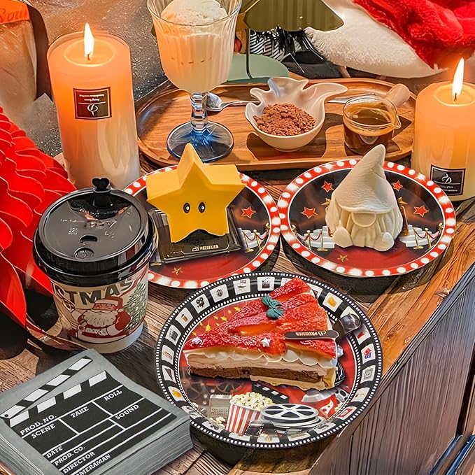 180Pcs Movie Night Party Supplies Paper Plates and Napkins Serve 60 Disposable Tableware Set for Birthday Party Decorations Game Day Family School Holiday Sports Events
