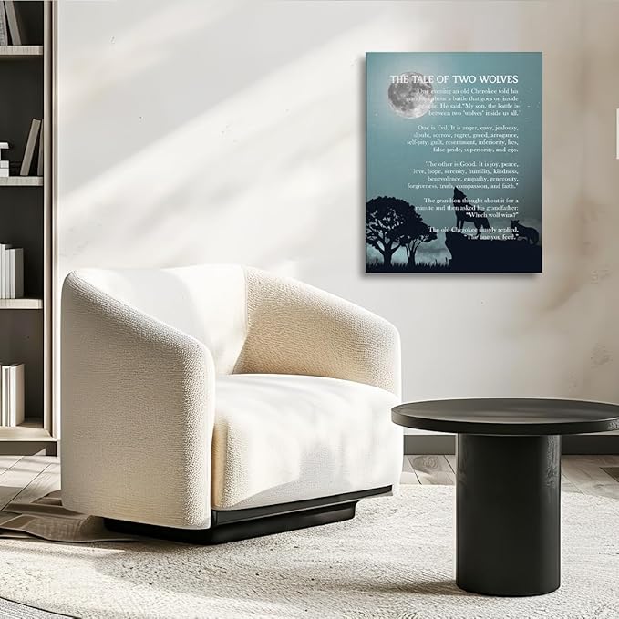 Wolf Wall Art, Wolf Poster, The Tale of Two Wolves, Canvas Wall Art Inspirational Quote Decor 6x20 inch