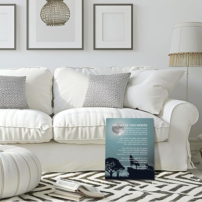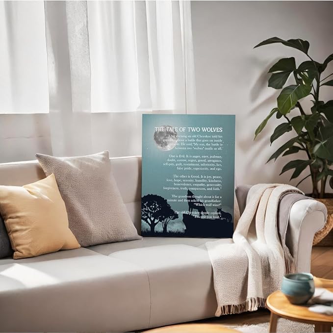 Wolf Wall Art, Wolf Poster, The Tale of Two Wolves, Canvas Wall Art Inspirational Quote Decor, Native American Art 14x17 inch
