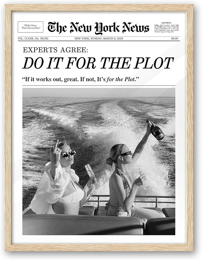 iHery Natural OAK Wood Hot Girls Newspaper Trendy Framed Wall Art, 12x16 in Vintage Headline Canvas Print, Beige Logs Retro, Do it for The Plot, Set of 1 Apartment Funny Girly Dorm Room Bedroom