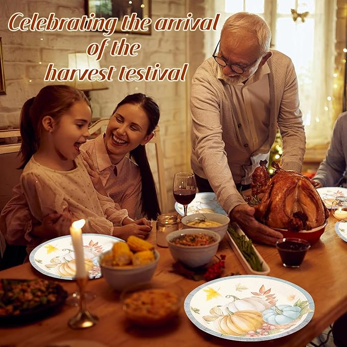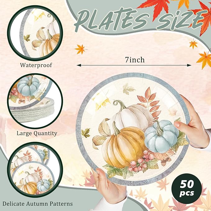 - 【EXQUISITE DESIGN】: The whole set of paper plates is designed with autumn pumpkin and leaf patterns. Simple, stylish and elegant with natural and fresh colours. Pair it with autumn themed table decorations and host a party event about autumn with your guests. It will not only make people feel relaxed and comfortable, but also impress you and your guests!