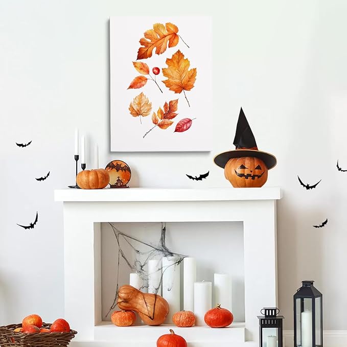 Framed Autumn Leaves Canvas Print posters Rustic Fall Decor Halloween Wall Art Autumn Watercolor Artwork Fall Poster 11x14 framed
