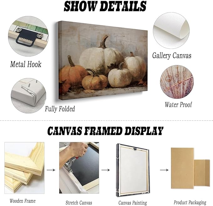 Framed Fall Wall Decor Pumpkin Still Life Canvas Paint posters Rustic Fall Art Vintage Autumn Wall Print Halloween Autumn Decor Thanksgiving 20x30 framed