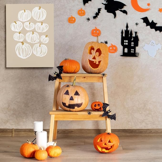 Generic Framed Neutral Pumpkin Painting Posters Modern Fall Canvas Print Wall Art, Beige Fall Decor Abstract Autumn Poster Halloween Decor 24x36""framed