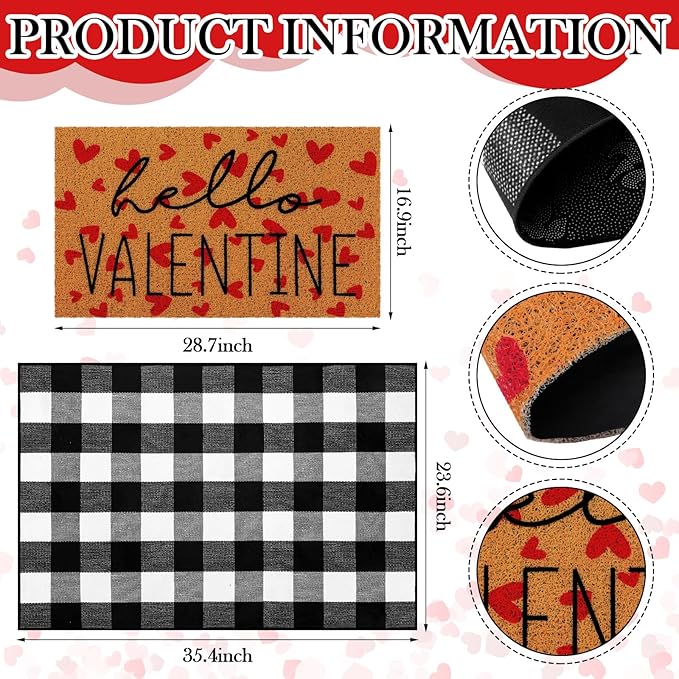 - Package Includes: this set includes a checkered rug printed with "hello VALENTINE" and a buffalo plaid rug; Both items complement each other nicely but can also be applied separately at different entrance doors to extend a warm welcome to your guests