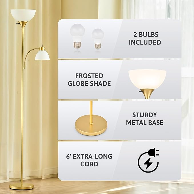 - Immediate Use: This elegant tall lamp comes with a 9W bulb and a 5W LED bulbs for instant illumination right out of the box. It also welcomes any E26 light bulbs up to 60W, allowing you to effortlessly enhance your lighting to suit your preferences