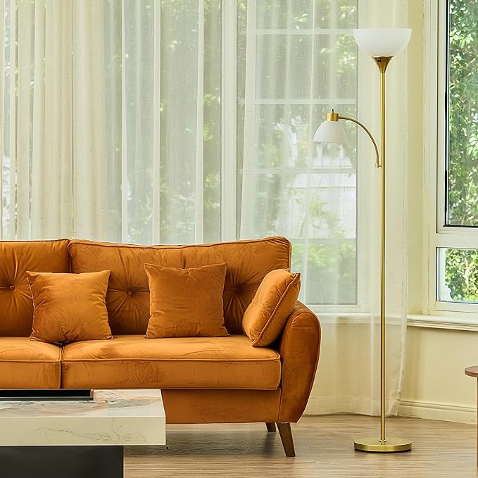 - Sleek Modern Design: This 71" torchiere floor lamp by Vonluce complements any interior style with its refined silhouette, sleek gold finish, and elegant domed white shades, creating a harmonious balance between form and function