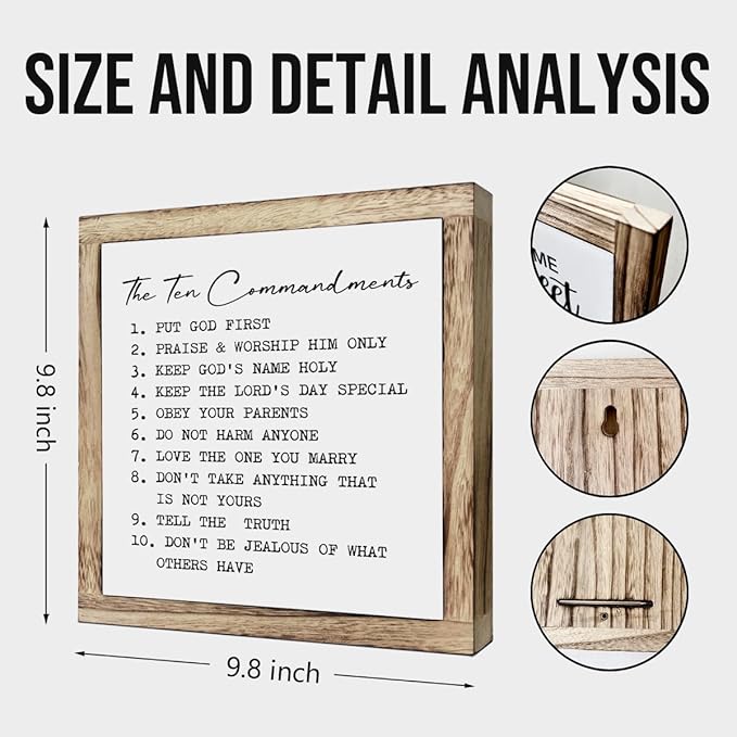 The Ten Commandments Sign, Farmhouse Home Decor, Living Room Decor, Kids Bedroom Decoration, Christian Desk Signs, Commandments for Kids, Encouragement Gift, Wooden Plaques Box Signs, 9.8 * 9.8 Inch