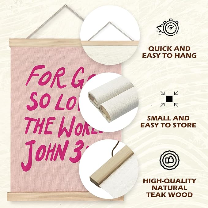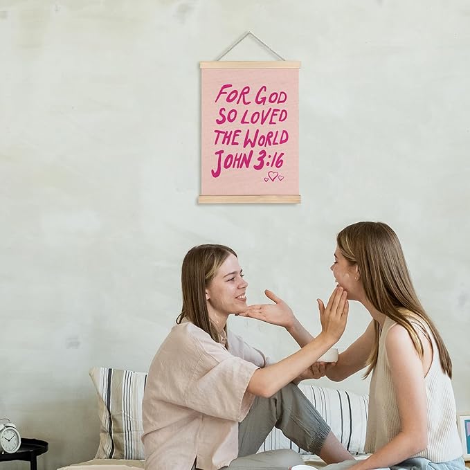 Supwhd Christian Wall Decor, Trendy Preppy Pink Bible Verse Wall Art With Wooden Poster Hanger, Pink Preppy Wall Decor, Christian Wall Art for Girls Room Dorm Decor, 12x16