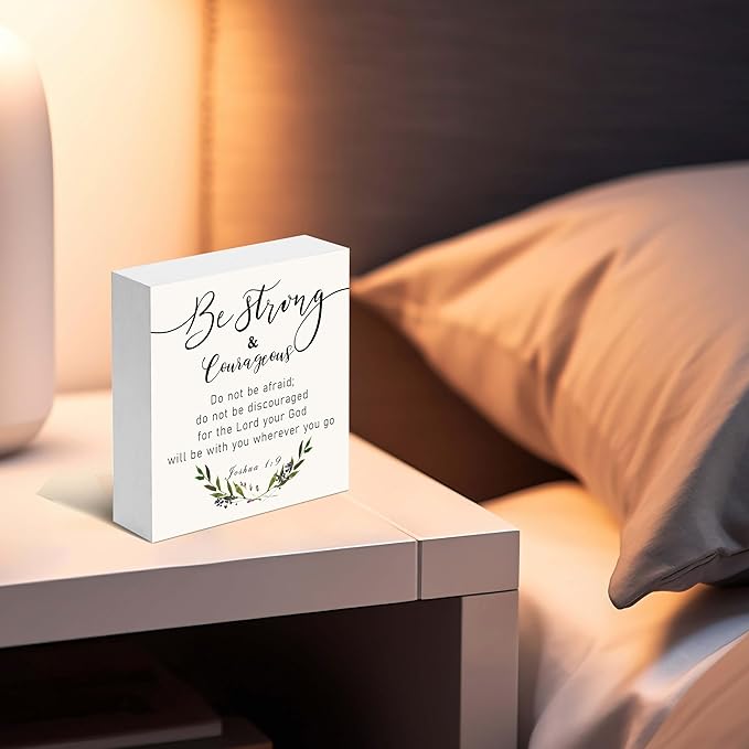 Christian Gifts, ‘Be Strong & Courageous’ Wooden Box Sign Decor, Birthday, Thanksgiving, Christmas Gifts, Christian Decorations, Christian Home Décor Gifts for Family, Friends, etc.(056)