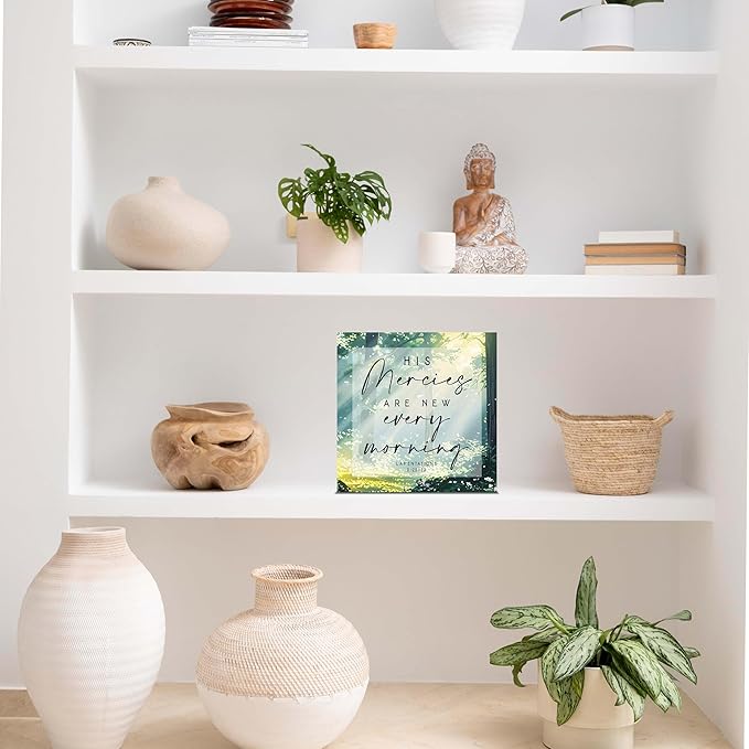 Christian Gifts, ‘His Mercies Are New Every Morning’ Wooden Box Sign Decor, Thanksgiving, Christmas Gifts, Christian Decorations, Christian Home Décor Gifts for Family, Friends, etc.(061)