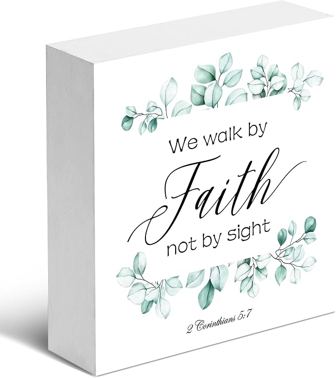 Christian Gifts, ‘We Walk By Faith Not by Sight’ Wooden Box Sign, Christian Home Décor, Birthday, Thanksgiving, Christmas Gifts, Christian Decorations, Gifts for Family, Friends, etc. (055)