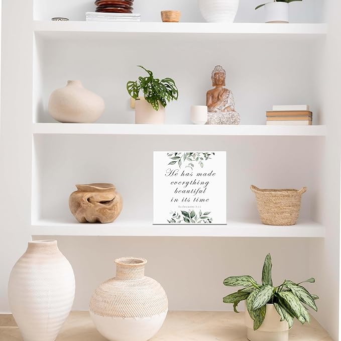 Christian Gifts - 'He has made everything beautiful in its time' Wooden Box Sign Decor for Thanksgiving, Christmas, Home Decor