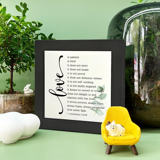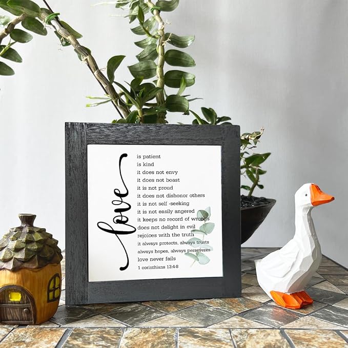 Bible Verse Corinthians 13:4-8 Box Sign, Love Never Fails, Wooden Plaque Gift Tabletop, Rustic Love Sign, Wood Block Plaque for Anniversary, Religious Home Decor, Couple Wedding Gift D1